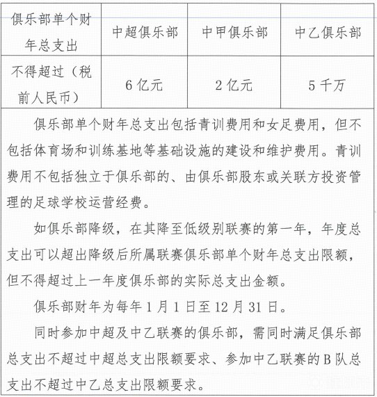 北京時間12月3日,中足聯(lián)發(fā)布了關(guān)于中國足球職業(yè)聯(lián)賽俱樂部財務(wù)約定指標(biāo)的公告,公告中明確了各級職業(yè)聯(lián)賽在單個財年的支出上限。
